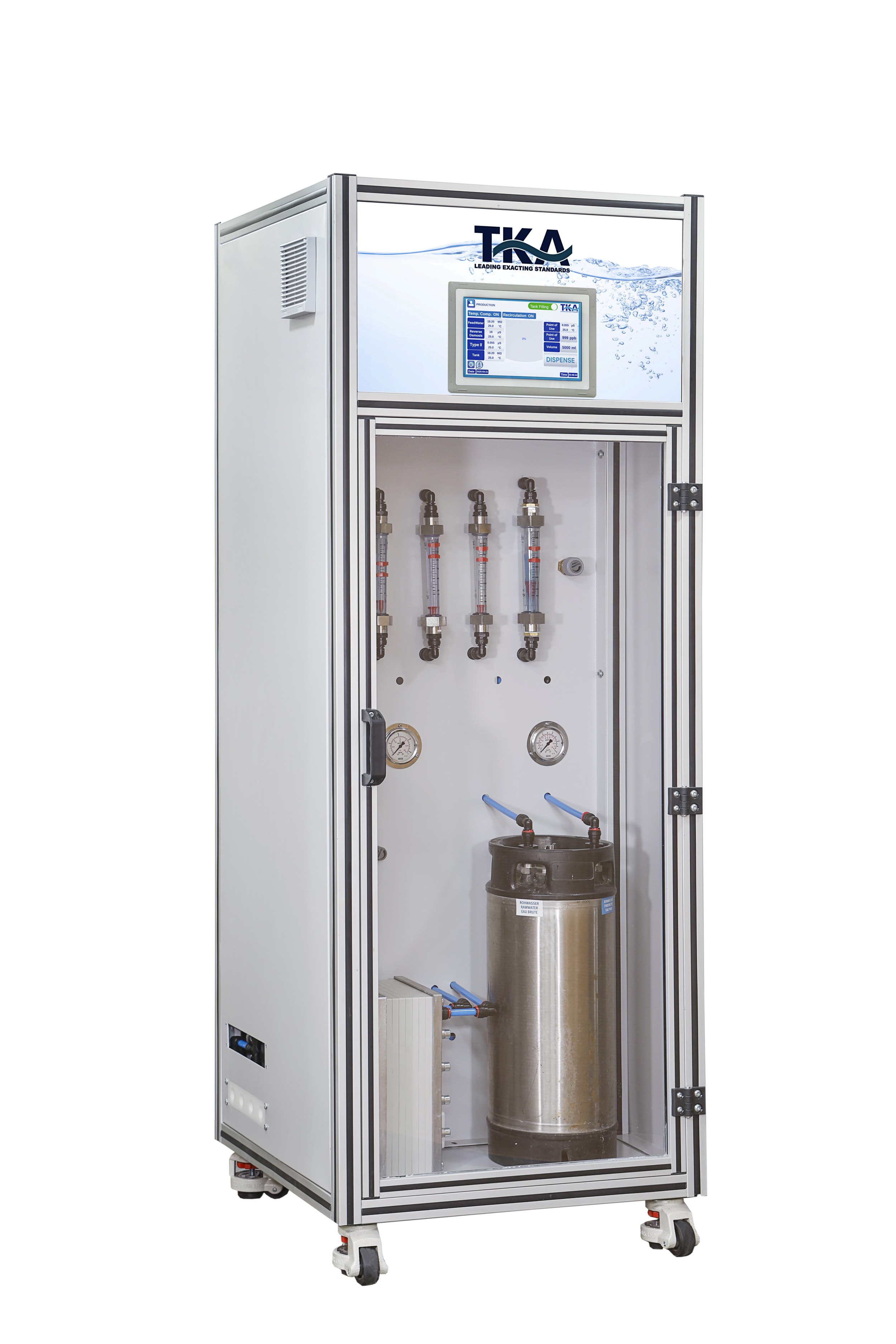 This unique construction of TKA EDI produces water with quality greater than 10MΩ and stores it in a stainless steel tank.